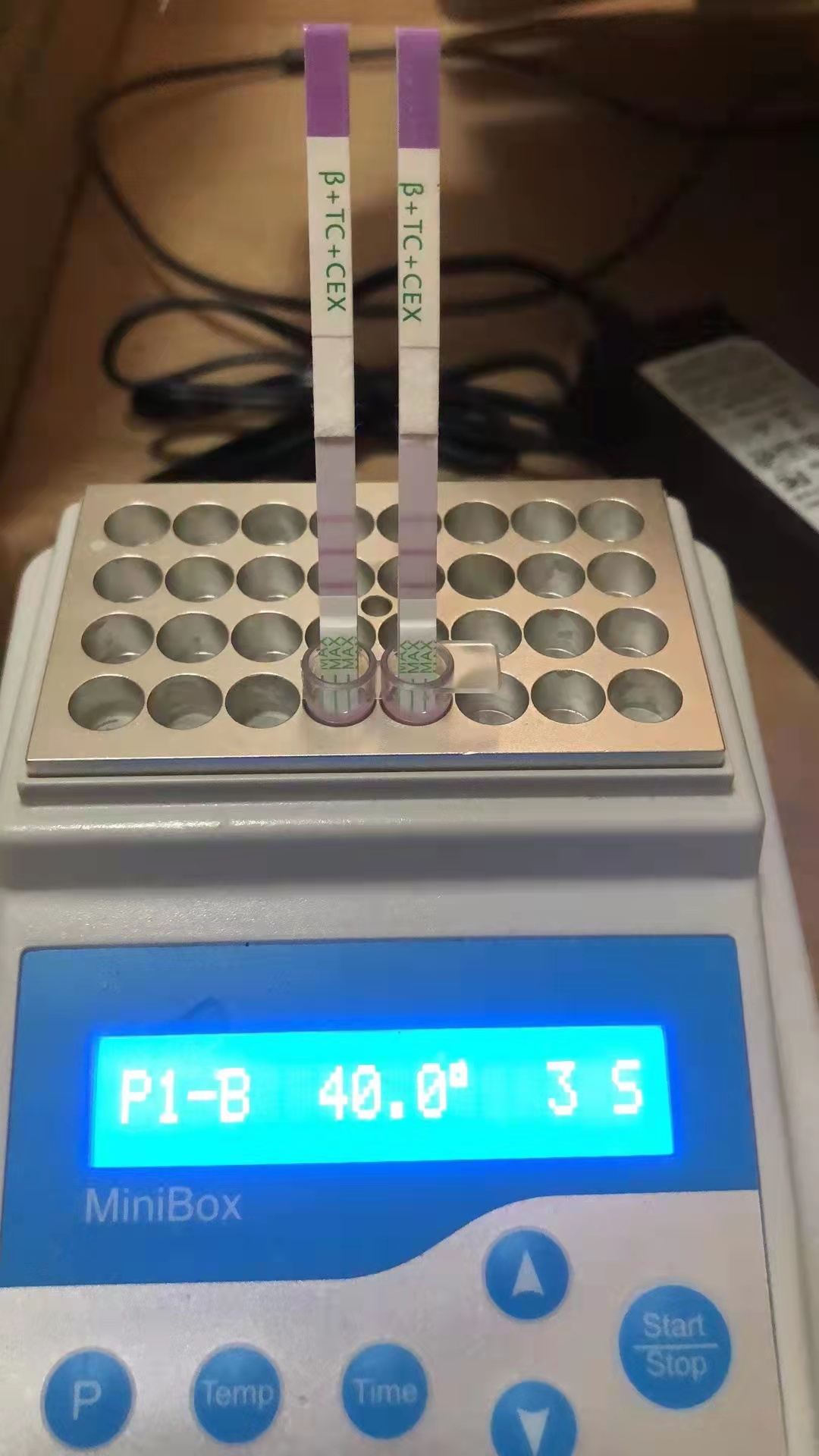 4. 將試紙條的樣品墊一端插入微孔中,40℃反應(yīng)5min。